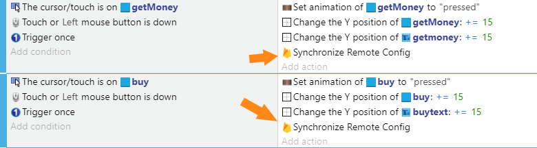 As you see, we use 2 variables in this example: one to decide how much money you win and one for how much you lose when clicking the buttons.