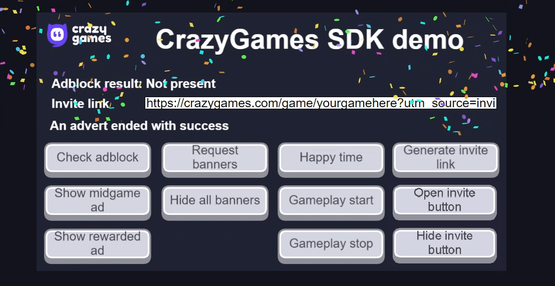 This extension allows games to be hosted on the CrazyGames website and display modules in games such as ads, banners, and various functionalities offered by CrazyGames.