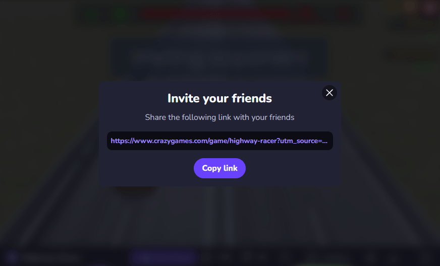 Display on CrazyGames website a popup containing the invite link with a copy button. This is very useful in a multiplayer game to give a friend the possibility to join a session quickly.