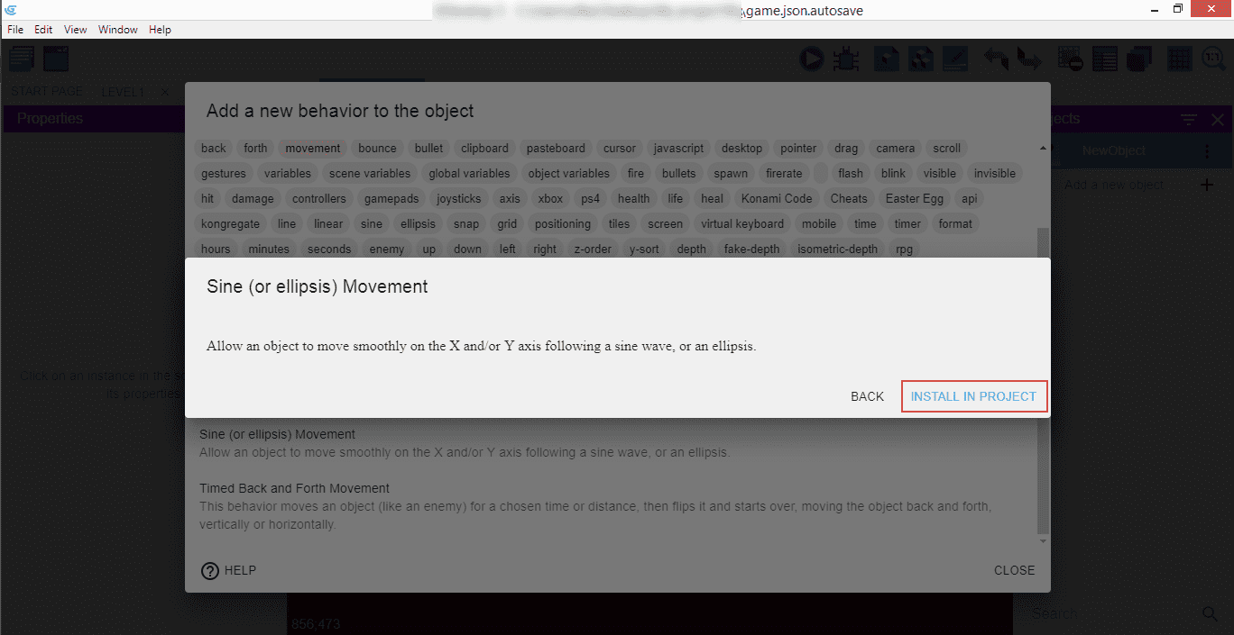 Go through the list of behaviors and click on the new "Ellipse movement".